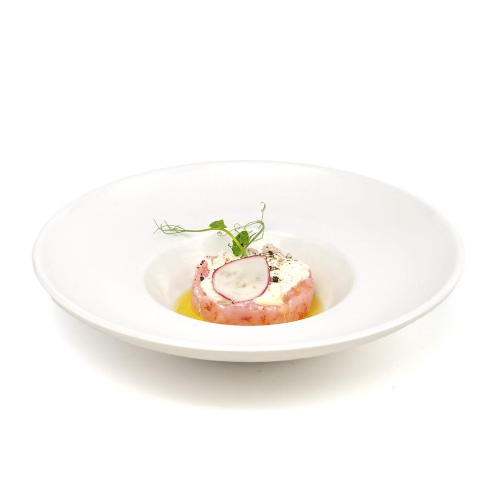 Gamberi crudi*, burrata, pepe nero, olio extra vergine d’oliva